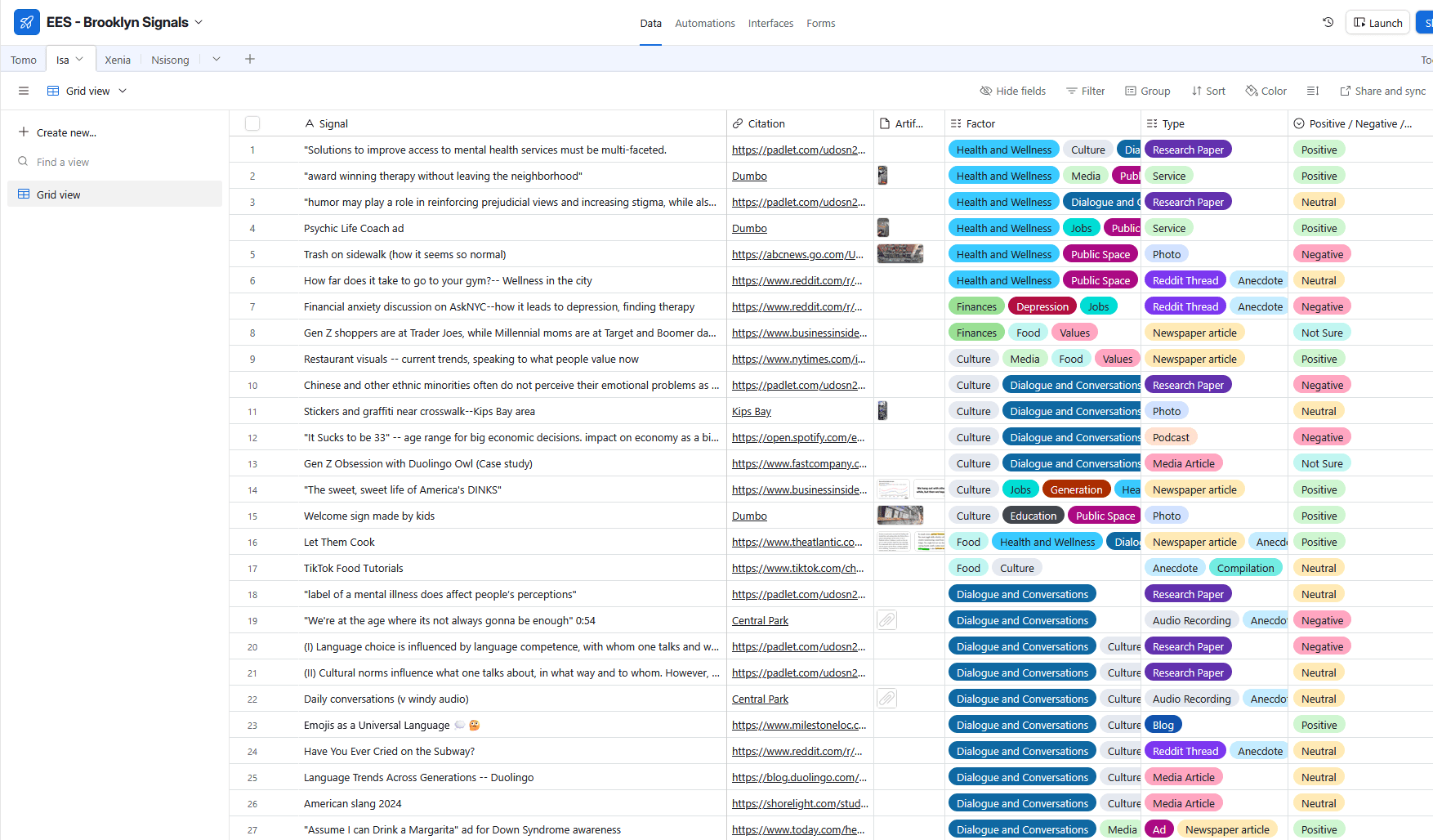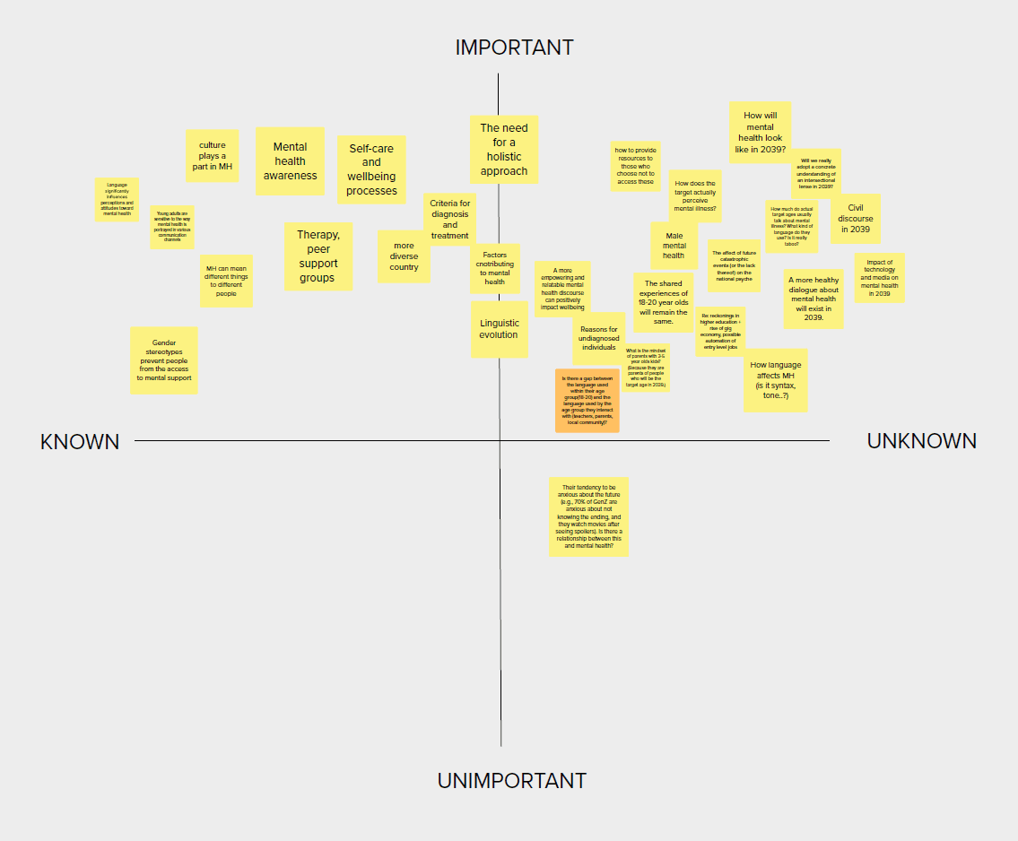 Each team member gathered 50+ trends and "signals" from around the city, looking at how different artifacts could affect wellbeing. Over 200+ "signals" were collected and analyzed.