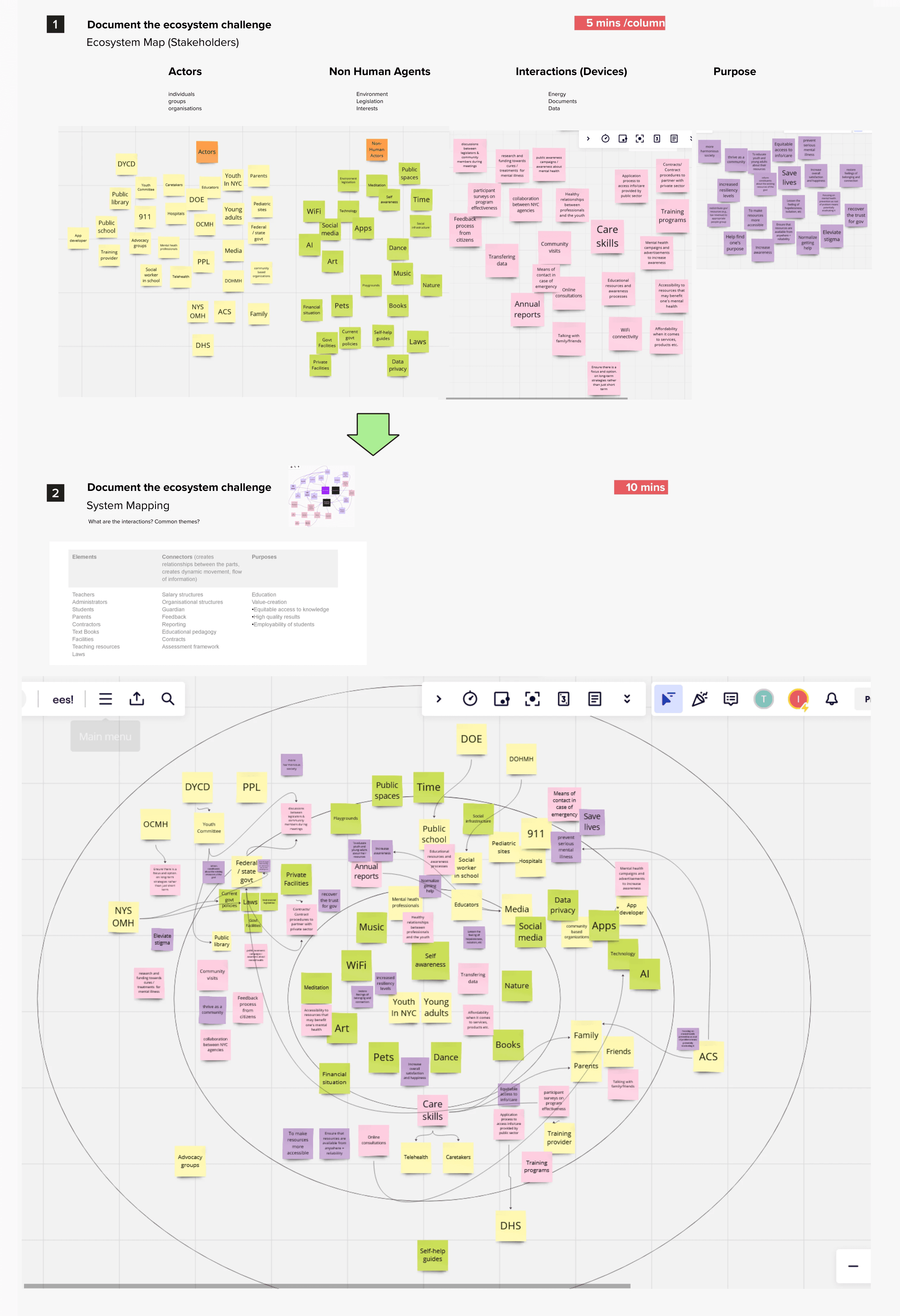An ecosystem map was first used to understand the stakesholders at large. In addition, an empathy map, domain map, and assumption map were also utilized to understand: